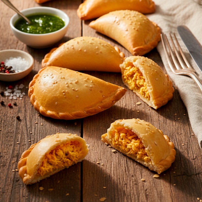 Massa leve que desmancha na boca, recheada com frango temperado e cremoso.